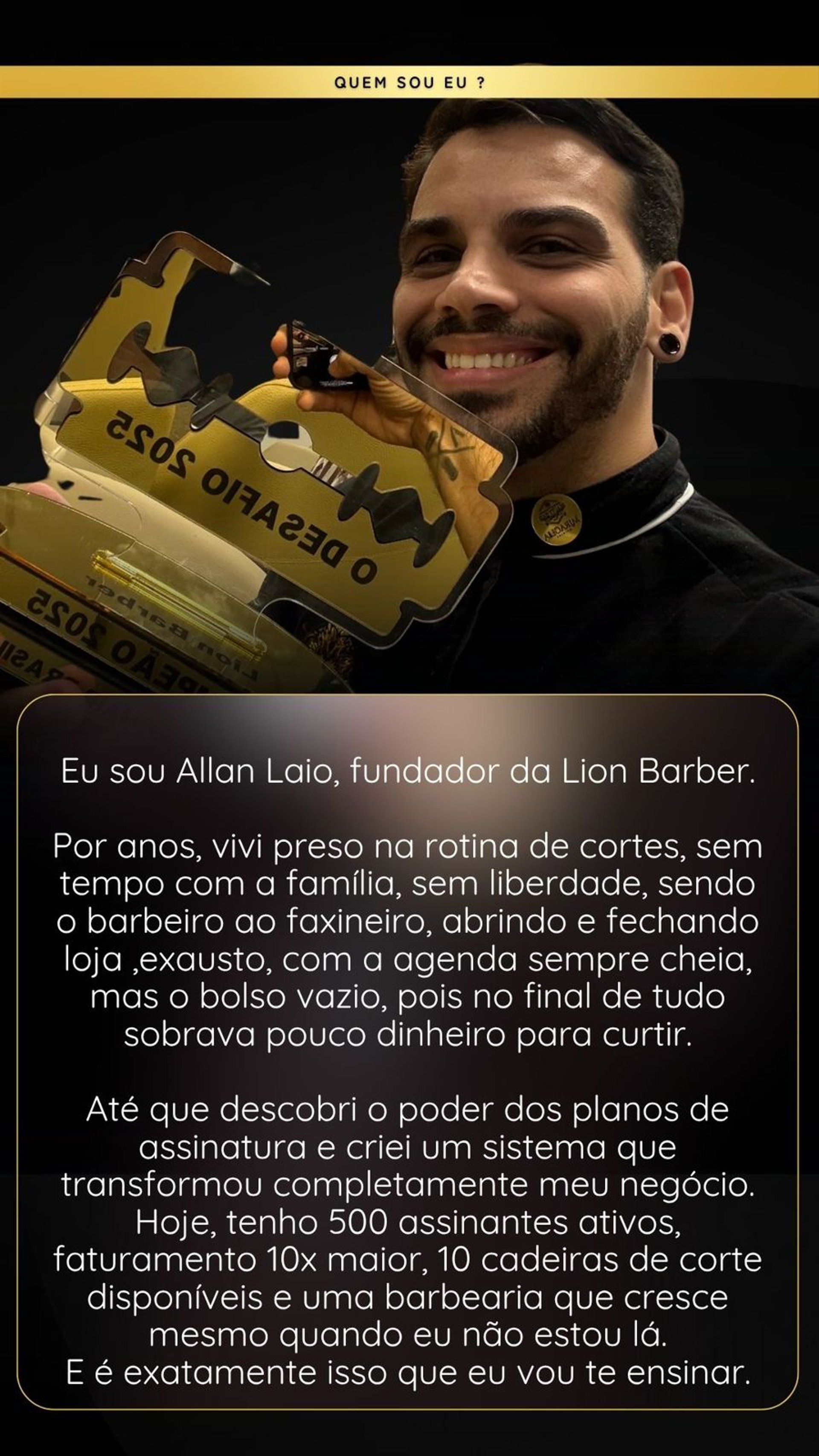 Entre pra mentoria Método Lion 12M e construa uma barbearia que te dá liberdade, lucro e reconhecimento.